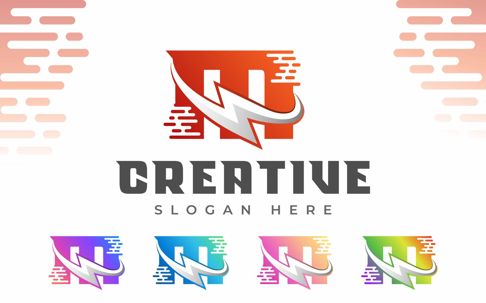 Letter M Energy logo or M Electric Logo with Lightning Icon or thunder bolt combination