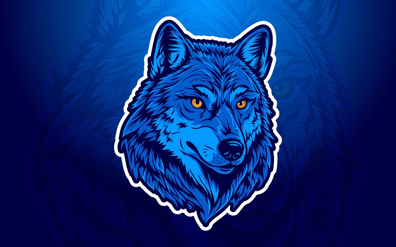 A captivating digital illustration featuring the head of a majestic wolf, rendered in various striking shades of blue with a prominent white outline. The wolf’s intense, piercing orange eyes stand out vividly against its cool-toned fur, conveying a sense of alertness and power. This detailed vector artwork showcases intricate fur textures and strong graphic lines, making it suitable for a wide range of design projects. The overall design exudes strength, wildness, and a mysterious aura, perfect for themes related to nature, animals, spirituality, or brand mascots. The art style is bold and modern, ideal for logos, t-shirts, gaming graphics, and contemporary media applications. The background features a subtle, complementary blue pattern that enhances the subject without distraction, creating a cohesive and impactful visual. This illustration is a symbol of leadership, resilience, and predatory grace, making it a versatile asset for creative endeavors.
